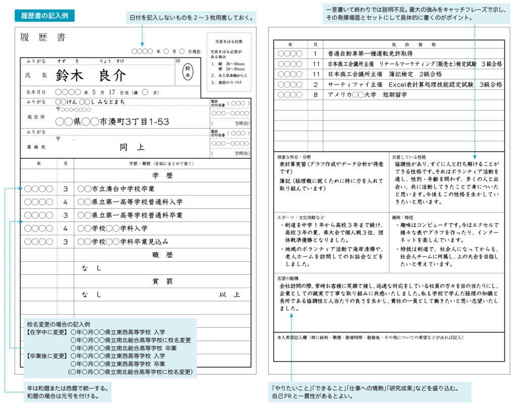 履歴書には、多くの記入項目があります。項目ごとに、ポイントを押さえて指導しましょう。