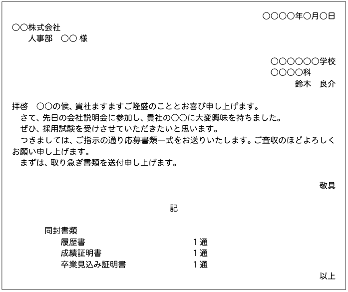 - 情報サイト経由で企業にエントリーするとメールまたは郵送で送られてくる