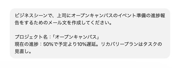 こちらもおすすめ:ChatGPTで効率的に文章作成!場面別のおすすめプロンプト5選も紹介