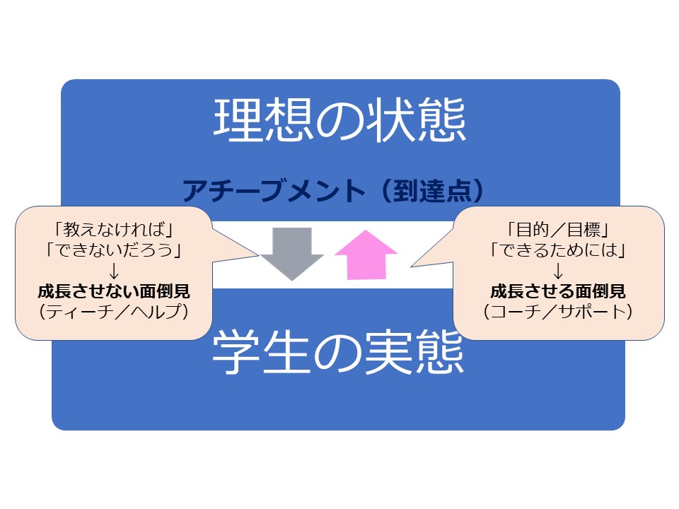 今回のリレーションづくりで重要なポイントは、「学生を成長させる、引き上げる面倒見」(図1参照)を意識することです。