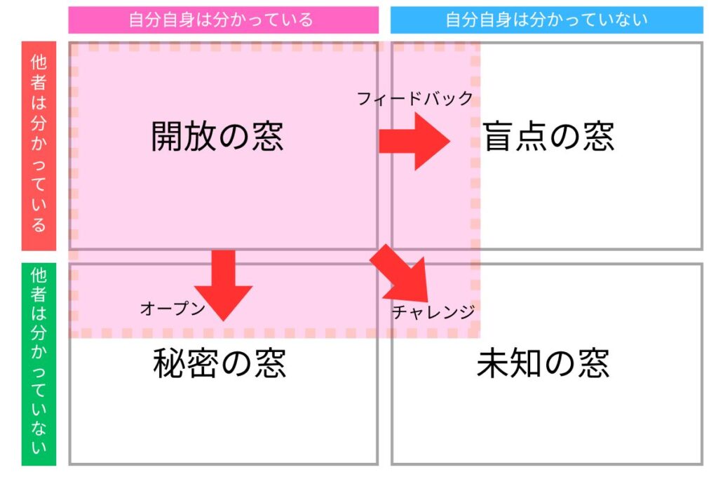 「盲目の窓」を減らし、「開放の窓」を広げるためには、心理的安全性を確保させた上での、他者からのフィードバックの機会を増やすことが必要です。