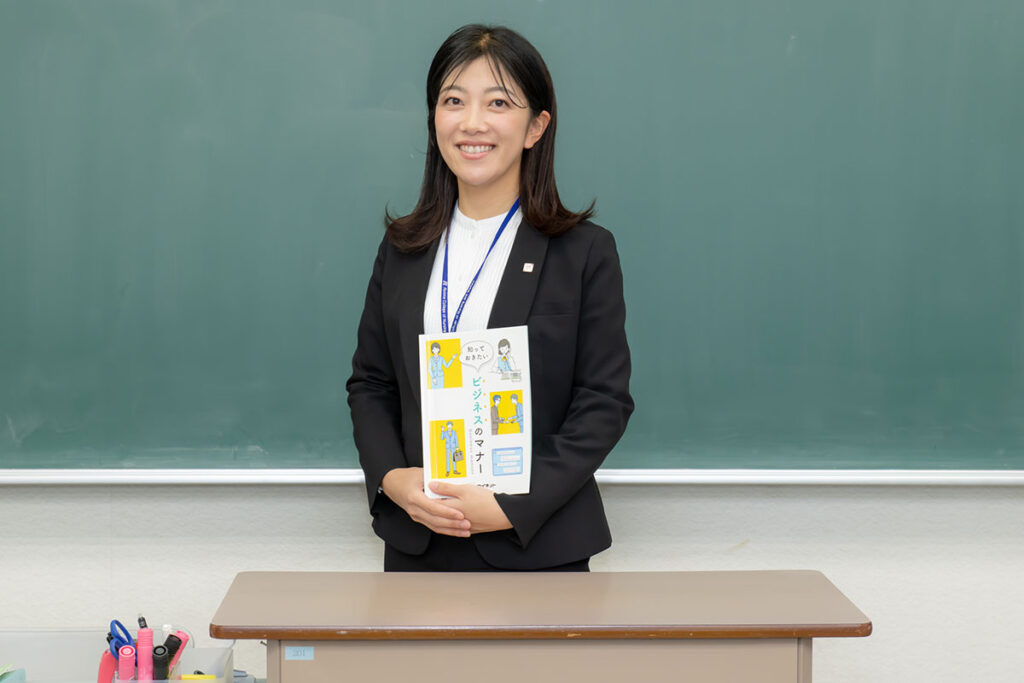 担当しているビジネスマナーの授業で、「愛される人になる」ことを目標にしています。「愛される人」と聞くと、最初はみんな気まずそうな顔をするんですよね(笑)。でも、「頭がいい」「仕事ができる」だけでなく、「あなたがいると雰囲気が良くなる」「あなたの明るさに助けられる」ということも、仕事をする上で大切な要素だと思うんです。