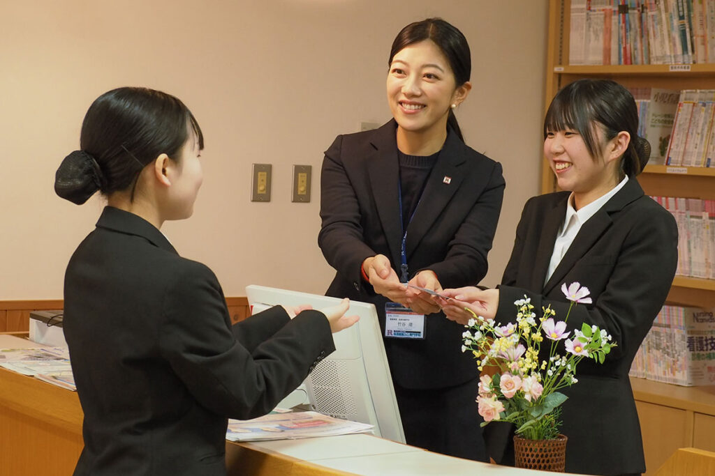 私がメインで担当しているのはビジネスマナー、コミュニケーションの授業ですが、今の学生はコロナ禍を経験していることもあり、自分を出せない、コミュニケーションがうまく取れないという傾向が見られます。そういった学生が、だんだんと自分から質問に来たり、片手で提出していたプリントを両手で「先生、お願いします」と出せるようになったり…。小さな変化ですが、少しずつ成長が見られることにやりがいを感じます。